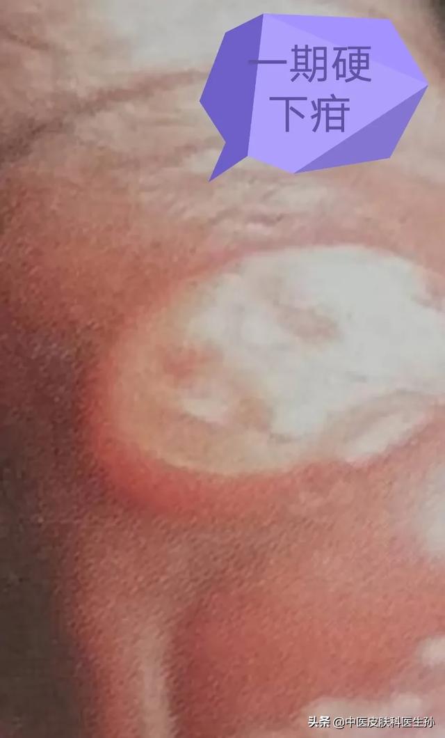 まず、性器にできる丸く硬い潰瘍、通常は黄色かオレンジ色で、大きさは豆から硬貨くらい、骨の肉にある軟骨のように硬く、通常は痛みを伴わず、かゆみを伴うものを下疳と呼ぶことが多く、第1期梅毒の症状である。下疳は性器だけでなく、肛門や口の中にもできます。下疳は自然治癒し、4~8週間で治り、梅毒第2期に移行する。