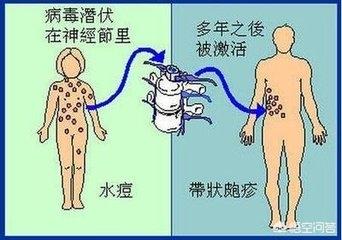 体の抵抗力が低下しているとき、労作、さまざまな誘発刺激の感染によって、ウイルスは再び活性化し、増殖・繁殖し、神経線維に沿って皮膚に移動し、侵害された神経や皮膚が強い炎症を起こす。ヘルペスの塊が皮膚に現れ、痛みを伴う。