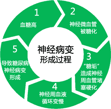 糖尿病性神経障害のメカニズムを見てみよう。糖尿病は神経系に大きなダメージを与えるため、神経障害は糖尿病の慢性合併症の中でも最も多いものの一つと言える。病態 グルコースはインスリンの助けを借りずに神経細胞に入るため、糖尿病患者の神経細胞内のグルコース濃度はしばしば高くなり、このグルコースはアルドース還元酵素の触媒作用でソルビトールに、さらにフルクトースに変化し、神経細胞内の浸透圧を上昇させ、水分を過剰に吸収する。患者の高血糖により、神経細胞内のタンパク質は糖化と変性を起こし、糖尿病性微小血管病変と相まってこれが局所的な低酸素症を引き起こし、最終的に神経細胞の腫脹と神経線維の鞘の剥離を引き起こし、糖尿病性神経障害を発症させる。糖尿病によって全身の神経組織が損傷を受けることがあり、その場所と機能によって、糖尿病性神経障害は中枢性神経障害と末梢性神経障害に分類されるが、より一般的なのは末梢性神経障害である。