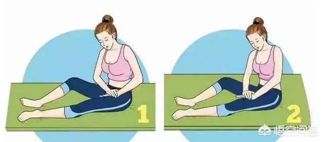 脚を押して座り、まず左脚を曲げて膝を平らにし、手のひらを重ねて左太ももの付け根の内側を押し、膝を少し前に出して、まず左、次に右と50回ずつ行う。
