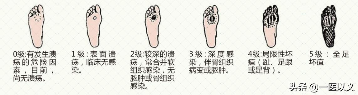- 糖尿病足が進行すると、中足骨の筋肉や中足骨などの組織に円形の貫通性潰瘍ができる。そして、筋肉や足の骨を腐食し、この潰瘍は、感染後に発生し、長期的な感染面があり、多くの場合、目に見える白い厚い苔のカバー、この膿性の変化は、特徴的な悪臭を発するでしょう、私は一度糖尿病性足感染症の2人の患者の薬を変更し、それは本当に生涯忘れられないにおいです、私はマスクを二枚重ねに着用し、また、ドライヒーヴィングの症状。感染症は非常に治りにくい。最終的に、患肢は重度の虚血性壊疽、すなわち足指が黒くなり、乾燥して脱落するなどの症状を呈し、重症の場合は切断が必要となる。