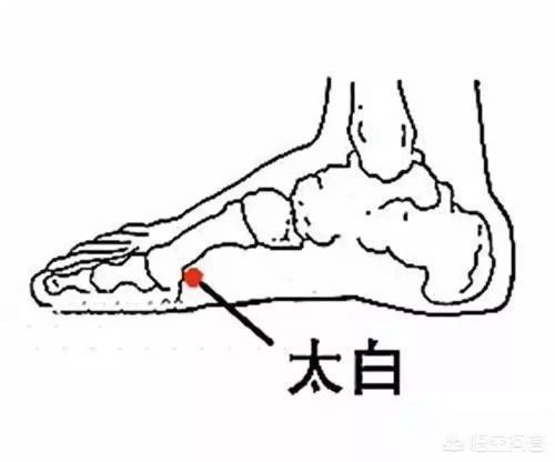 太白点は足の内側端にあり、第一中足骨結節が第一中足骨結節の後方下のくぼみにあるときである。