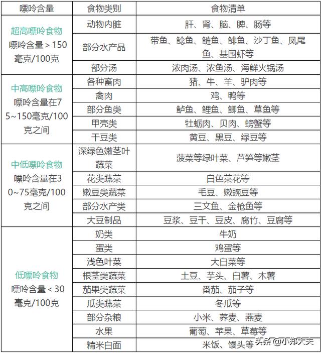 2.プリン体を多く含む食品:アスパラガス、レンズ豆、乾燥豆、コイ、スズキ、貝類、豚肉、牛肉、牛タン、アヒル、ガチョウ、羊肉、ウサギ、ウナギ、チキンスープなど。