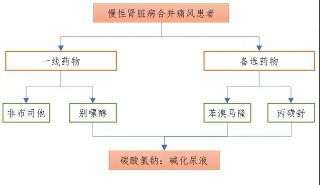 血中尿酸値が60μmol/L上昇するごとに、慢性腎臓病による全死亡リスクが約8%上昇するという研究結果がある。そのため、尿酸降下療法には尿酸産生抑制薬のアロプリノールやフェブキソスタット、尿酸排泄促進薬のベンズブロマロンが使われます:急性痛風関節炎発作や尿酸塩沈着による骨破壊を軽減または回避できるだけでなく、痛風腎症の発症や進行も軽減または回避できる。