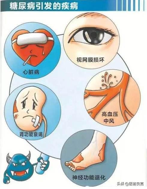 2.慢性合併症はもっと多く、一般的には眼病、腎臓病、糖足症、神経障害、心血管疾患、脳血管疾患などがある。慢性合併症はある日突然発症するのではなく、時間をかけてゆっくりと進行する。一般に、糖質制限患者の空腹時血糖が8.0を超え、食後血糖が11.1を超え、糖化ヘモグロビンが8.5%を超えると、血糖コントロール不良とみなされ、長期的には慢性合併症の発症リスクが高くなる。