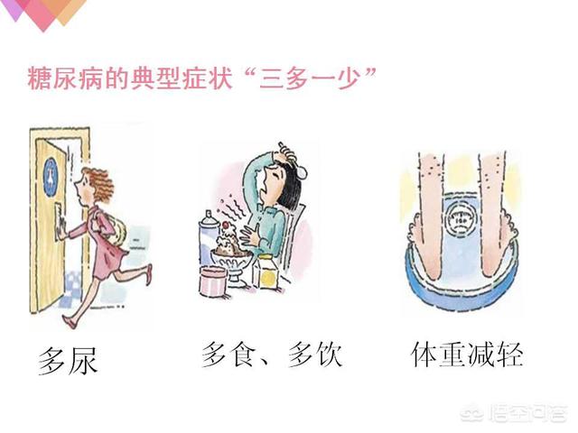 1型糖尿病:発症年齢が比較的若く、通常30歳未満であり、急激な発症によりインスリンβ細胞の絶対量が不足し、三多くて一少の明らかな症状(飲酒量増加、排尿量増加、食事量増加、体重減少)がみられ、一部の重症患者でもケトン尿症やケトアシドーシスの症状を伴う;