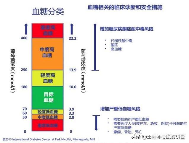 また、低血糖の既往歴のある患者、肝不全や腎不全のある患者、血糖値の変動が大きく低血糖症状を繰り返す患者、重篤な病気で食事が摂れない患者などは、低血糖を避けるために血糖コントロールの基準を緩和し、空腹時血糖を6~10mmol/L、食後2時間血糖を8~12mmol/Lに緩和することができる。は特殊なケースに過ぎない。