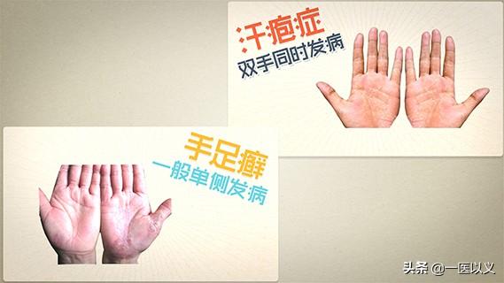 汗疱は主に皮下にできる小さな水疱で、小さな米粒から米粒が大きくなり、内側は透明で分離しており、初めは皮がむけず、後期になって初めて皮がむけます。癜風は、初めは皮がむけ、次第に手の甲に広がり、その縁に小さな吹き出物や目立たない水疱ができる。