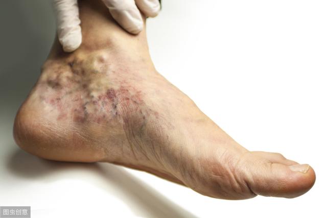 下肢静脈瘤を合併した糖尿病患者では、静脈の異常な逆流と静脈弁の機能低下により、血液が下肢に停滞し、その結果、組織液が皮下に漏出し、浮腫が生じます。患者の皮膚表面には、ミミズのように蛇行した静脈の集まりが見られる。重症例では、皮膚栄養不良、色素沈着、皮膚壊死がみられる。
