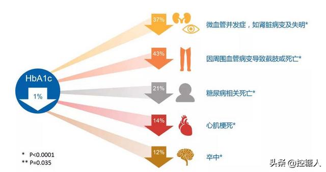 高血糖による腎臓、眼底、動脈硬化などの血管疾患を効果的に予防できる。高齢でなく、基礎疾患もなく、体調も比較的良好な人の場合は、6.5%以下と厳しく管理する必要があるが、重篤な慢性疾患、腫瘍、高齢、基礎疾患のある患者の場合は、具体的な状況に応じて7.5~8%まで適切に管理値を緩和することができる。ただし、糖化ヘモグロビンが9%を超えると血糖コントロール不良の目安となり、糖尿病性腎症、動脈硬化、眼底病変などの合併症を引き起こす可能性がある。