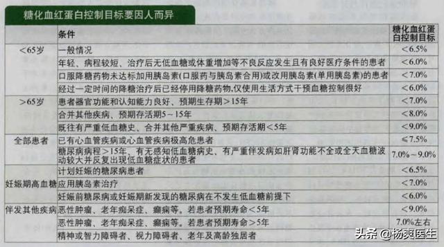 余命が5年未満の場合、糖化ヘモグロビンは9%にコントロールできる。余命が5年以上であれば、可能であれば7%程度にコントロールできる。低血糖を繰り返す患者であれば、糖化ヘモグロビンは7%から9%程度にコントロールできます。 ですから、一概に糖化ヘモグロビンは6.5%以下でなければならないとは言えません。主に患者の年齢、余命のレベル、合併症、低血糖反応の再発の有無などに基づいて決められます。