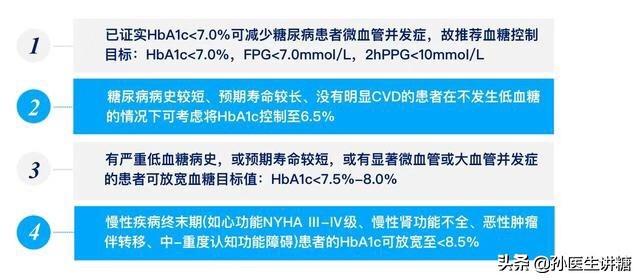 このような標準の確立は、実際には、他の国と、私たちの糖尿病のガイドラインまたは標準の専門家のコンセンサスは、実際には、糖尿病の糖化ヘモグロビン制御目標のために、まず第一に、患者の特定の状況と組み合わせて、層別化管理、血糖コントロール目標の合理的な個人化設定、一方では、一般的な原則に注意を払うことである、つまり、患者の体が許容するために、血糖値をもたらすようにしよう。一方、一般的な原則に注意を払うことが重要である。つまり、患者の体が耐えられる範囲で血糖をコントロールし、高血糖による健康被害を減らすことである。糖化ヘモグロビンの目標値が6.5%であれ、7.0%であれ、8.0%であれ、その目的は安全性を確保し、リスクを回避することであり、血糖値をコントロールし、身体が最大の健康効果を得られるようにすることである。