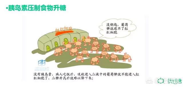 食べたものが体内で代謝されて血液中のブドウ糖になった後、このブドウ糖が細胞内に入って様々な活動に必要なエネルギーを供給できるように、鍵である「インスリン」が全身の各組織細胞の扉を開ける必要があり、その結果血糖値が下がり、鍵がなかったり鍵が足りなかったりすると、ブドウ糖が組織細胞内に入ることができず、血糖値が上昇する。キーがない、あるいはキーが十分でない場合、グルコースは組織細胞に入ることができず、血糖値は上昇する。