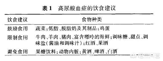 高尿酸血症の患者に対する治療としては、生活習慣への介入と、必要に応じて尿酸降下薬の投与が必要である。日常生活では、尿酸値の高い食品の摂取を厳しく制限し、動物の内臓、殻つきの魚介類、だし汁を摂らないように注意し、動物の肉、魚、肉の摂取を控える。より多くの新鮮な野菜、粗い穀物、低フルクトースの果物を食べることを奨励し、より多くの水を飲むために、それは一日あたり2000ミリリットルより大きくなることが適切である、白湯が適切であるが、また、ソーダ、軽いお茶やコーヒーを飲むことが適切であることができ、フルーツジュース、コーラや他のフルクトースが豊富な飲料を飲むことは避けてください。