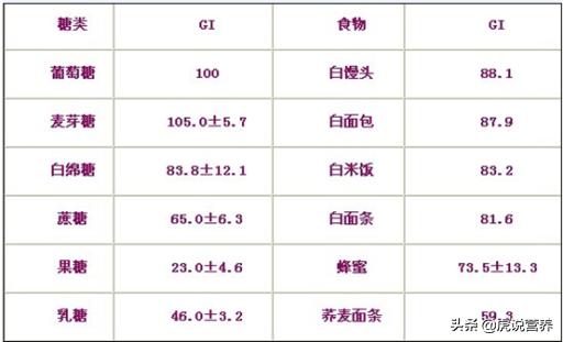 これは非常に簡単な質問で、以下にいくつかの食品の血糖指数(略してGI値)表を紹介するので、それらを比較すれば一目瞭然だろう。