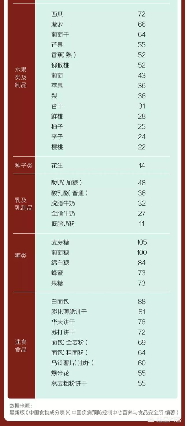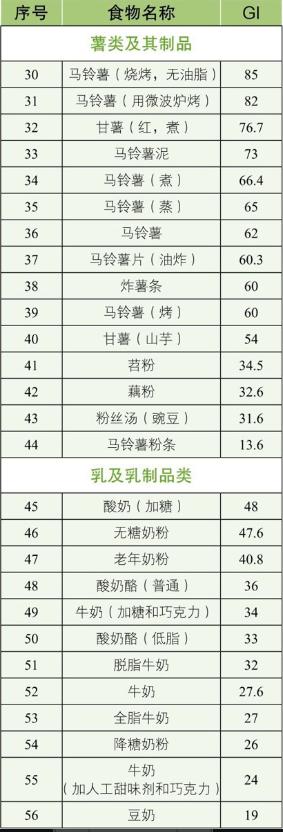 血糖値を上昇させる食品については、一般にグリセミック・インデックス(GI)がそのレベルの判定に用いられる。いわゆるグリセミック・インデックスとは、ブドウ糖と比較して、ある食品が血糖値を上昇させるスピードや能力を反映した「血糖上昇指数」のことである。一般的に、グリセミック指数が70を超える食品は高GI食品とみなされ、摂取量をコントロールする必要があります。参考までに、中国疾病予防管理センター(CDC)食品栄養安全研究所による中国食品成分表を以下に示す。