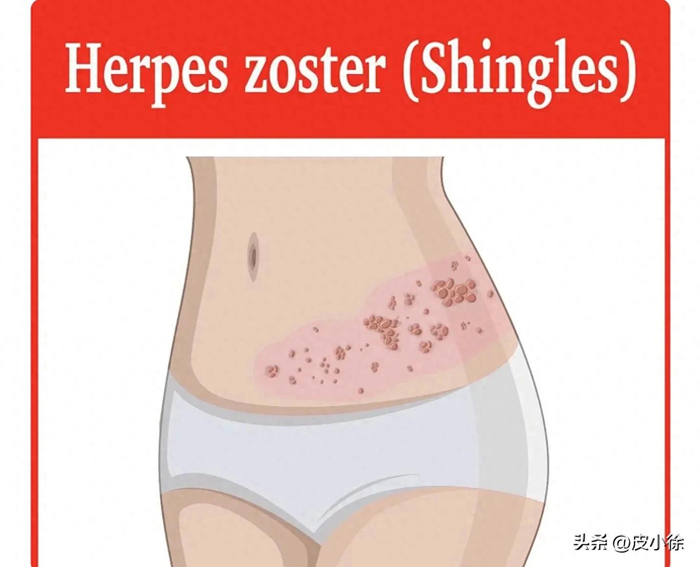 帯状疱疹は一般に「纏腰龍」と呼ばれ、腰部に発生しやすい特徴がありますが、腕、脚、腹部、さらには頭部にも発症する可能性があります。症状は片側性に分布する集簇性水疱と、ウイルスによる神経損傷に伴う神経痛や掻痒感です。積極的な抗ウイルス療法、神経栄養療法、鎮痛療法などの対症療法を行うことで、通常は水疱が速やかに吸収されます。皮膚に瘢痕や色素沈着が残る場合もありますが、水疱は最終的に消失します。