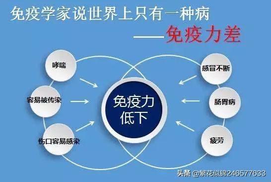 免疫力低下の主な原因は、①過労:人はもちろん、機械も定期的に休憩を取る必要があることを知っている。睡眠不足や過度の仕事の長い期間は、オーバードラフト機能になり、直接内分泌系に影響を与える場合、②負の感情(考えることができない、あまりにも多くを考える):これは悪循環であり、気分は、あなたがより多くのことを考えたいときに眠ることができない、負の、悲観的な気分の悪化をもたらし、睡眠に動機づけられていないものを行うには良いことではありません③偏食、拒食症:私たちは、栄養が食品、栄養の不均衡に簡単な不規則な食事からであることを知っている。運動:少ない運動、ない体力、現代人は運動する時間を持っていない、しかし、時間が圧迫され、運動の意識の欠如; ⑤薬物乱用:薬の不合理な使用、医師のアドバイス無差別使用、乱用に非遵守; ⑥年齢:古い、免疫システムは、最終的に疲労を感じやすく、低下します。
